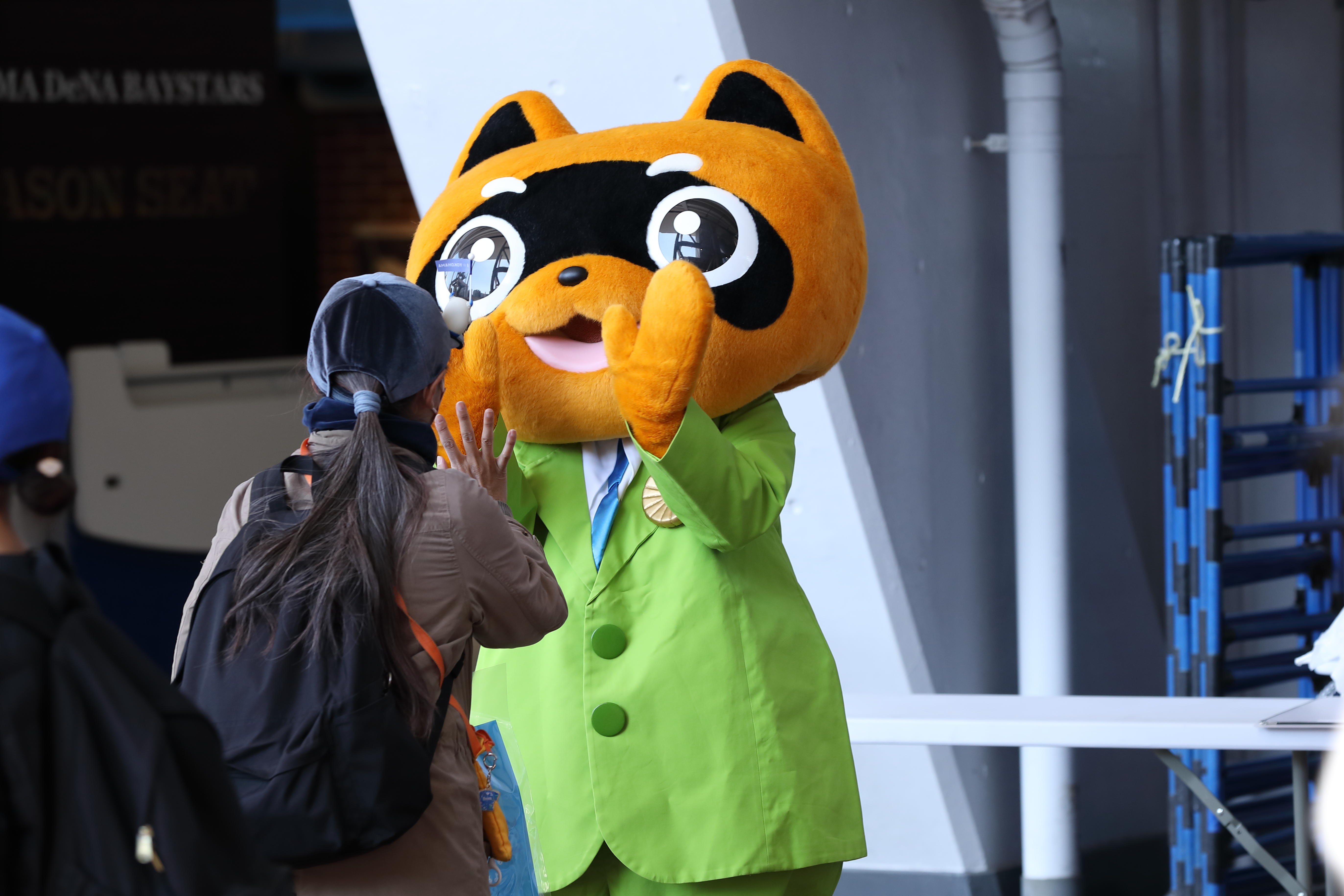 神奈川県弁護士会のマスコットキャラクター「みみん」「のるん」もスタジアムに駆けつけ、伊藤安耶弁護士と中原都実子弁護士が、試合前セレモニーの一環として選手へ花束を贈呈し、会場を華やかに演出しました。