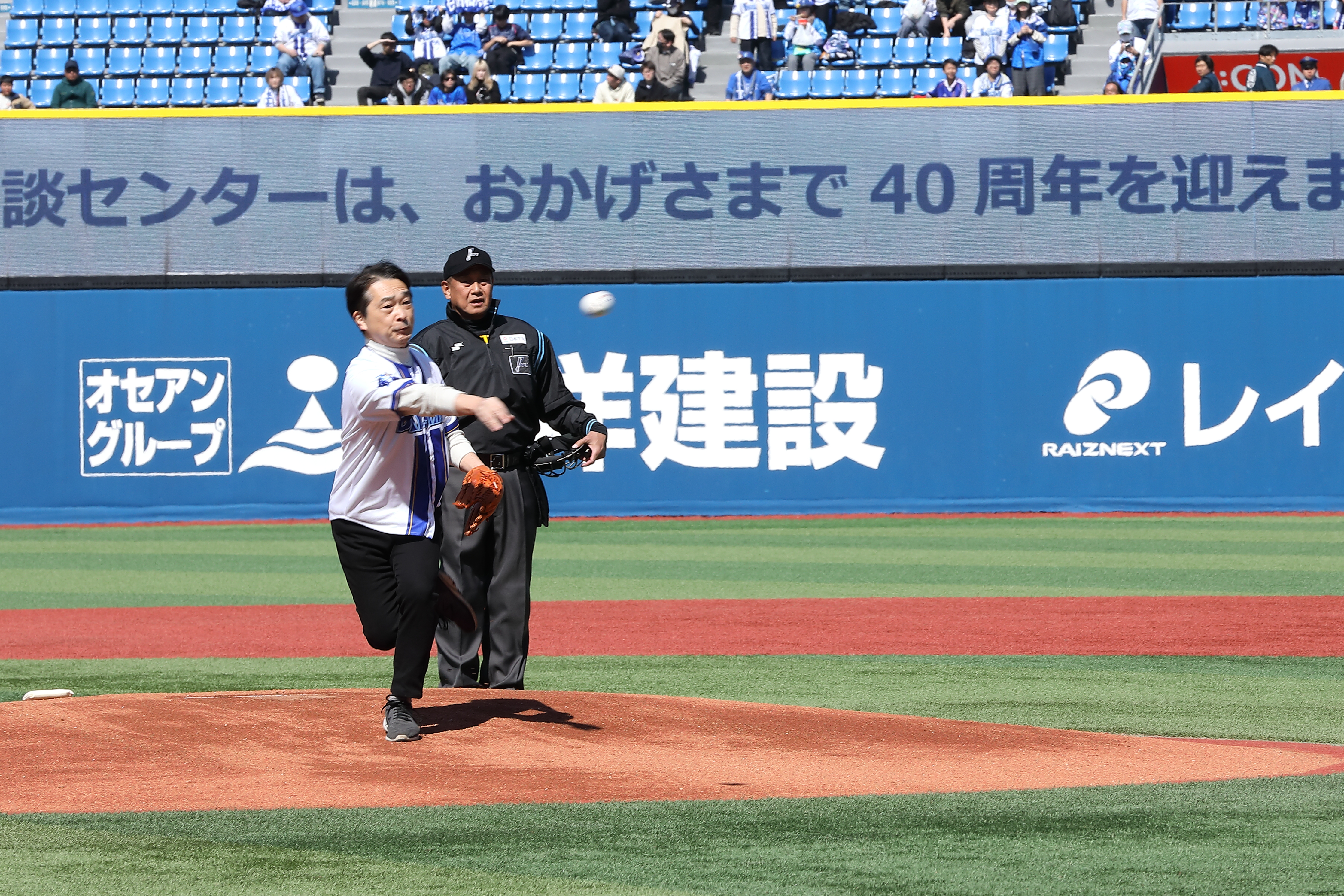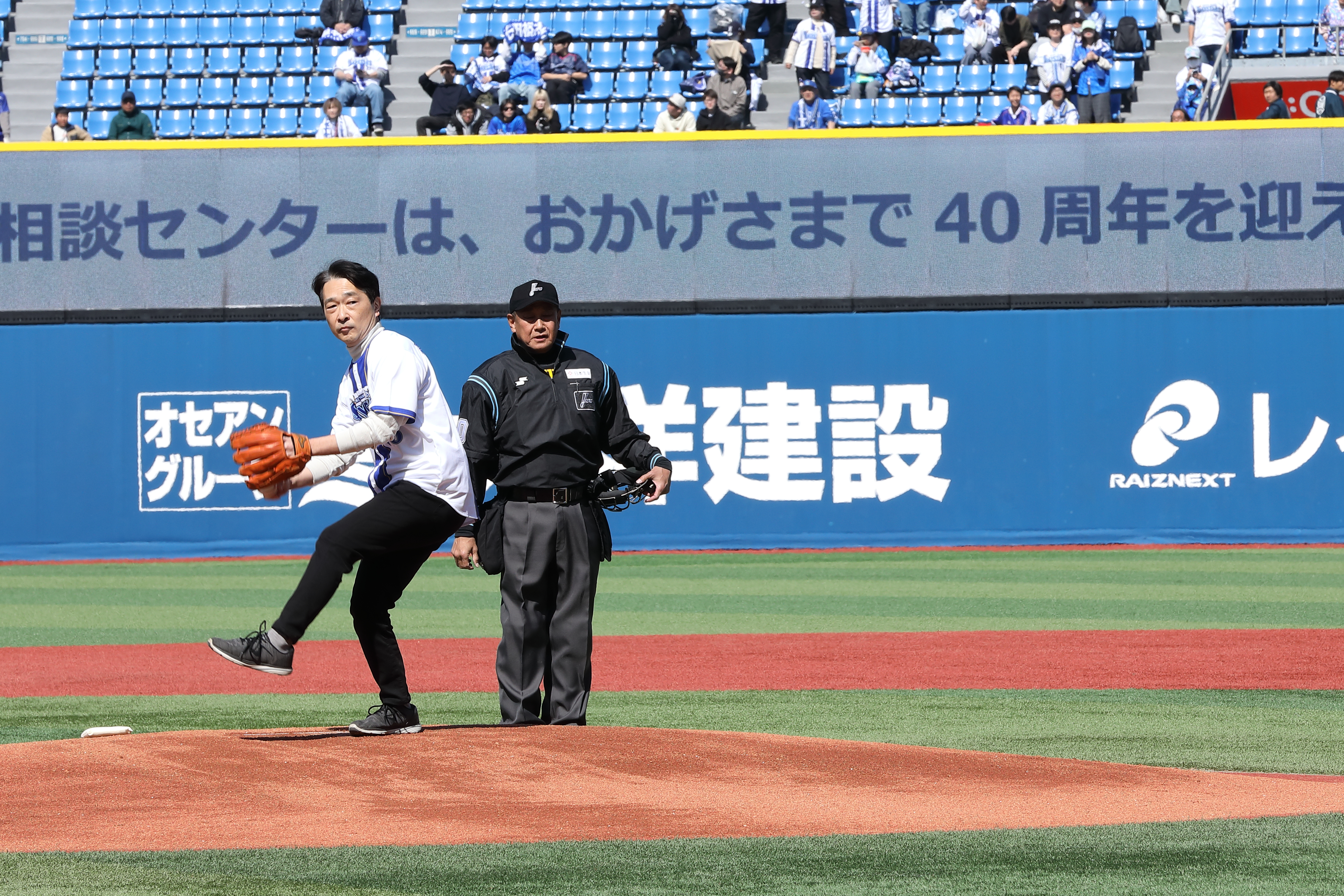 試合前には、当会会長の畑中隆爾弁護士が始球式に登板。サイドスローによる一投を披露し、そのフォームに会場では大きな歓声が上がりました。その力強い投球は、「神奈川県弁護士会DAY」の幕開けを印象づける場面となりました 。